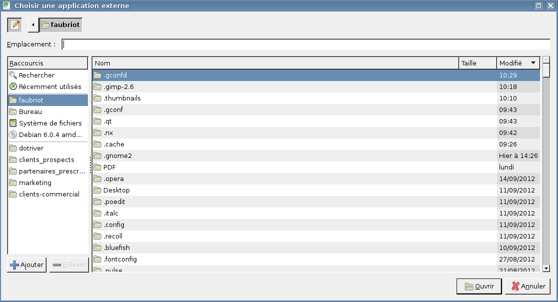 Si vous n'avez pas la ligne « Emplacement », avec le curseur, cliquez sur la petite icône en haut à gauche, en forme de « cahier+stylo ». Sinon, au niveau de « Emplacement », merci de saisir les lignes suivantes en fonction des applications :