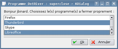 Pour retirer un programme de la liste des applications à fermer proprement, cliquez simplement une seconde fois dessus.