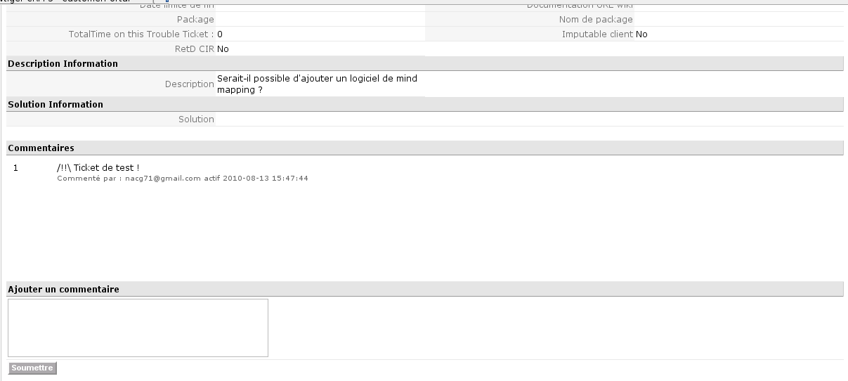 Une fenêtre récapitulative s'ouvre alors, vous pouvez à tout moment rajouter des commentaires sur votre ticket en descendant un peu plus bas dans la page.