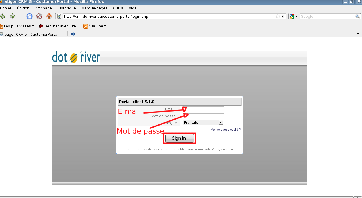 Voici les identifiants de votre accès au portail client DotRiver:
