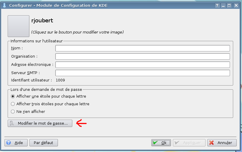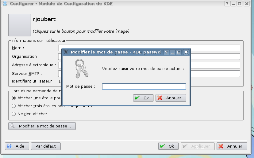 Puis saisir son nouveau mot de passe deux fois, valider en cliquant sur OK. Puis si une nouvelle fenêtre “Mot de passe trop long” s'ouvre, cliquer sur “Utiliser tel quel”.